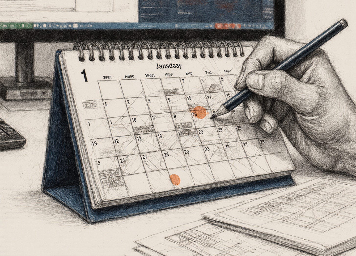 Segundo passo: Pense em trimestres, não em anos. Brian Moran e Michael Lennington, autores de “Um Ano em 12 Semanas”, argumentam que o planejamento anual é grandioso demais e cria a ilusão de que “tenho tempo”. Três meses é tempo suficiente para construir um novo hábito ou concluir um projeto significativo, mas curto o bastante para manter o senso de urgência. Pergunte-se: “Nas próximas 12 semanas, que sistemas eu vou implementar em cada área de responsabilidade?”. Isso aproxima o futuro do presente, tornando-o mais gerenciável.